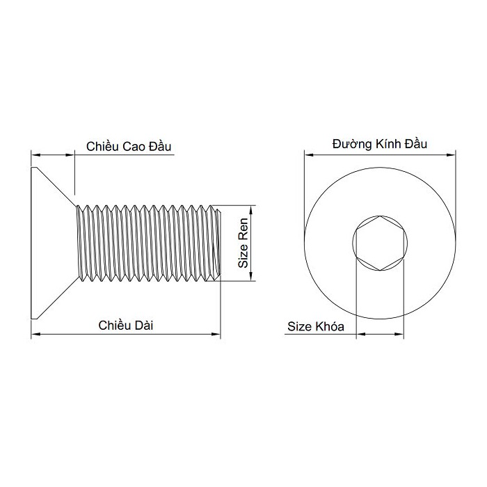 Lục Giác Chìm Col Inox 304 DIN7991 (Flat Hex Head Screws) được chế tạo theo tiêu chuẩn DIN 7991 bằng vật liệu Inox 304 có khả năng chống ăn mòn cao.